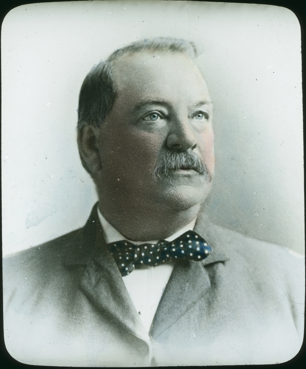 Kolorerad skioptikonbild med motiv av okänd man.