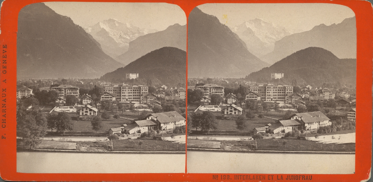 Stereobild med motiv av vy över Interlaken, Schweiz.