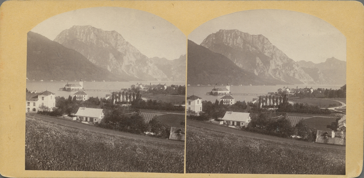 Stereobild med motiv av Schloss Ort i Traunsee, Österrike