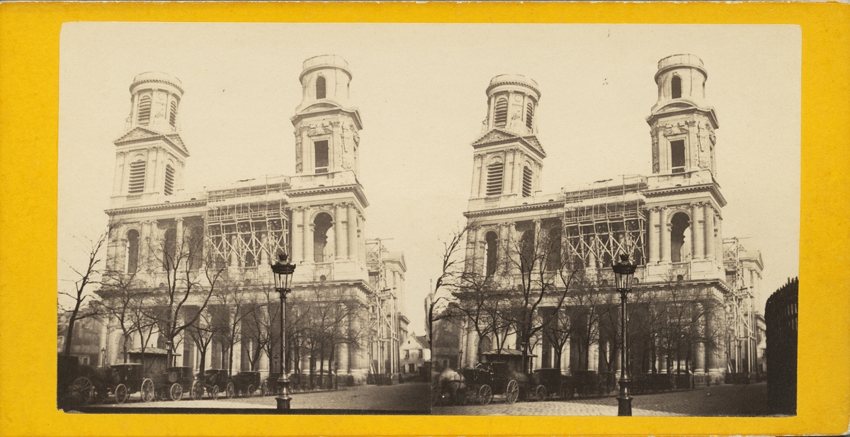 Stereobild med motiv av kyrkan Saint-Sulpice i Paris, Frankrike.