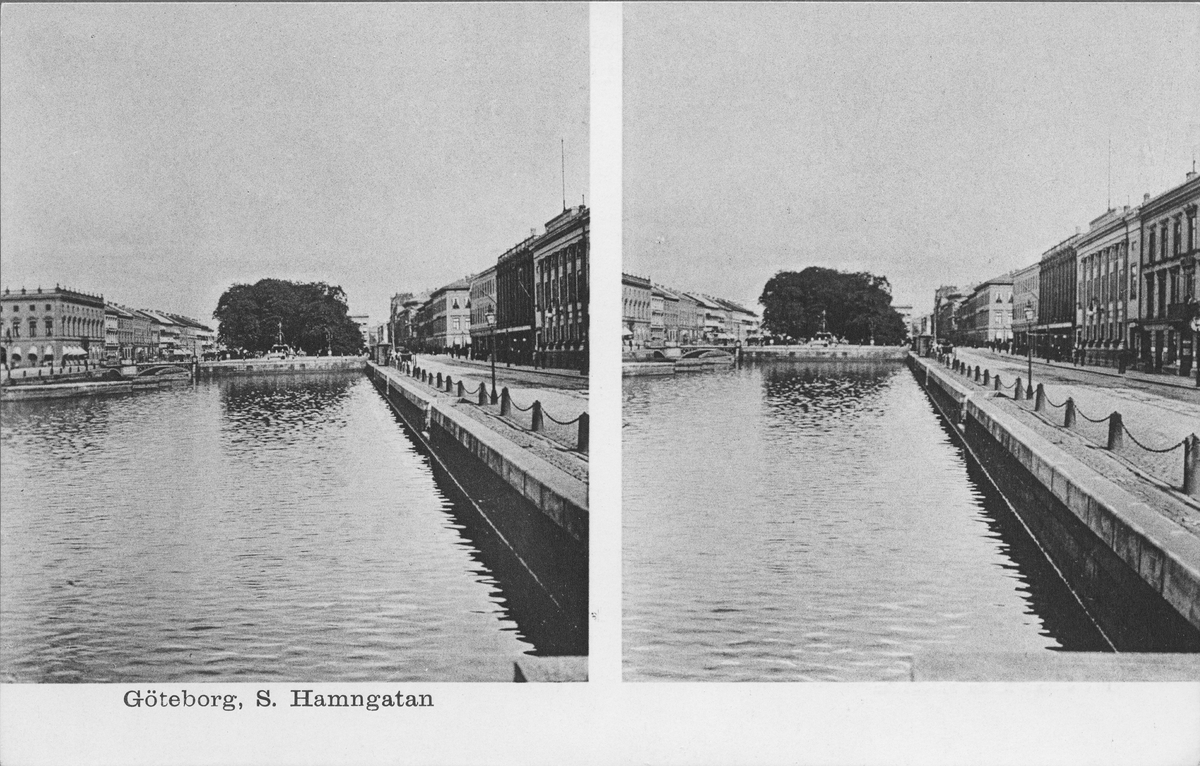 Stereobild med motiv från Hamngatan i södra Göteborg.