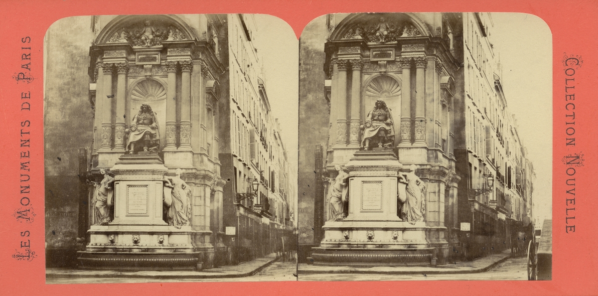 Stereobild med motiv av fontänen La fontaine Molière, Paris.