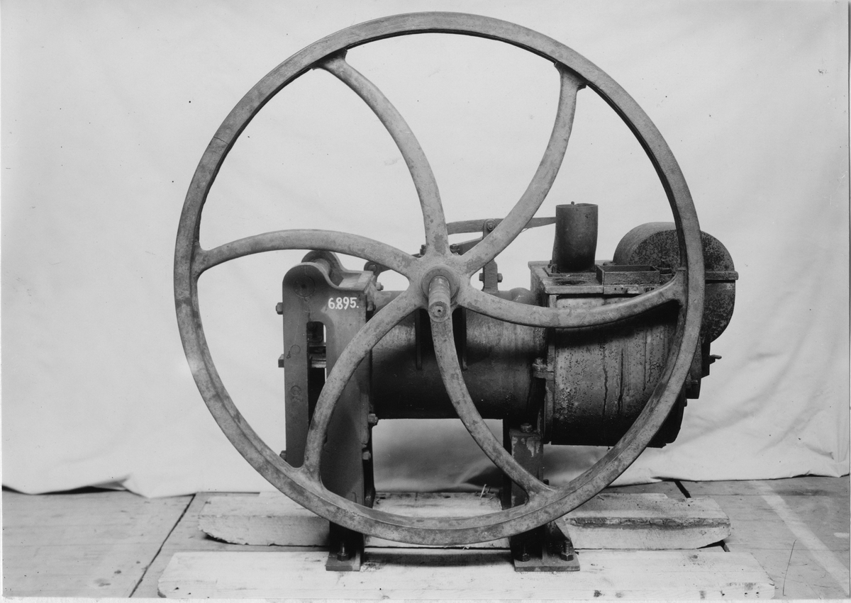 Liggande varmluftsmaskin av John Ericssons konstruktion. Användes 1879 vid Hemlingby Tegelbruk för drift av en lerblandare.