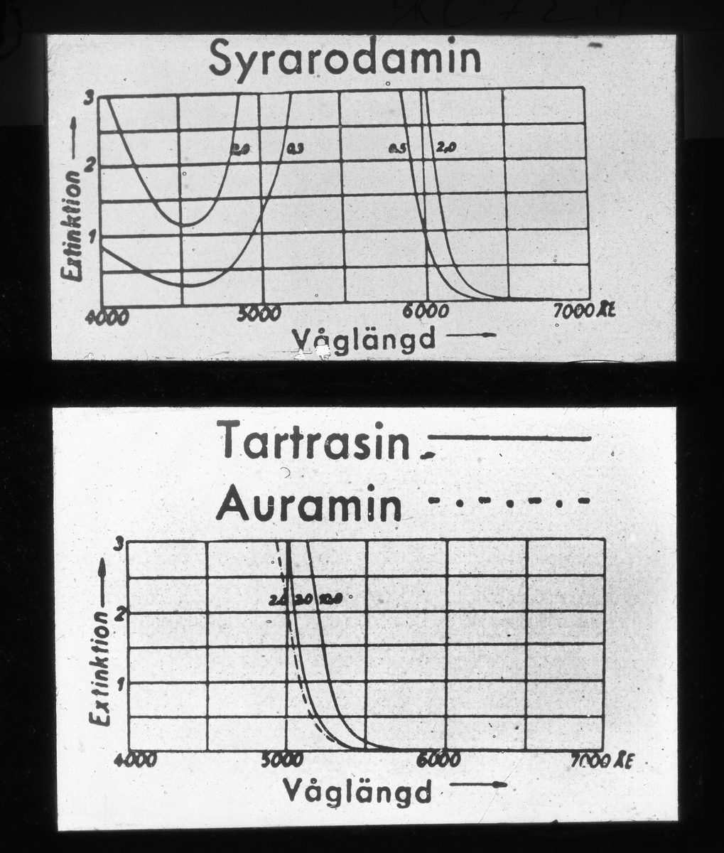 Skioptikonbild från Institutionen för fotografi vid Kungliga Tekniska Högskolan. Använd av professor Helmer Bäckström som föreläsningsmaterial. Bäckström var Sveriges första professor i fotografi vid Kungliga Tekniska Högskolan i Stockholm 1948-1958.