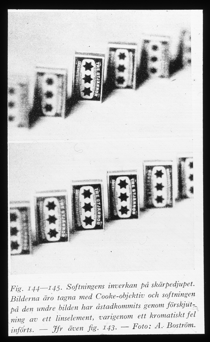 Skioptikonbild från Institutionen för fotografi vid Kungliga Tekniska Högskolan. Använd av professor Helmer Bäckström som föreläsningsmaterial. Bäckström var Sveriges första professor i fotografi vid Kungliga Tekniska Högskolan i Stockholm 1948-1958.