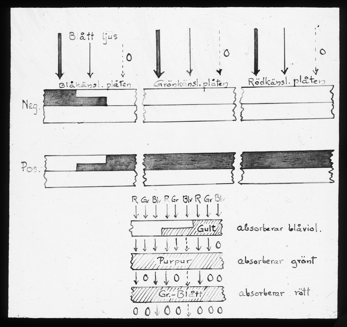 Skioptikonbild från Institutionen för fotografi vid Kungliga Tekniska Högskolan. Använd av professor Helmer Bäckström som föreläsningsmaterial. Bäckström var Sveriges första professor i fotografi vid Kungliga Tekniska Högskolan i Stockholm 1948-1958.