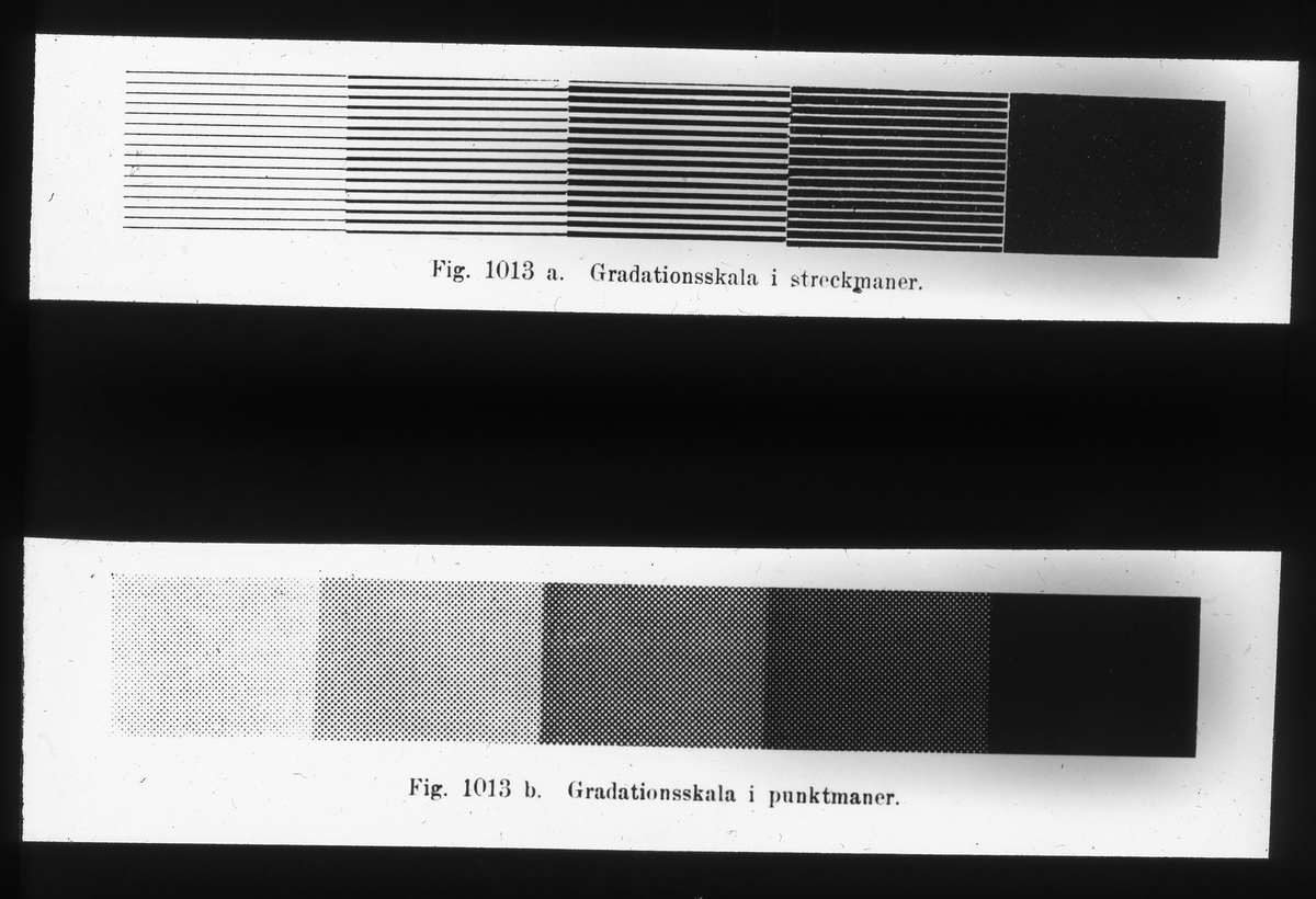 Skioptikonbild från Institutionen för fotografi vid Kungliga Tekniska Högskolan. Använd av professor Helmer Bäckström som föreläsningsmaterial. Bäckström var Sveriges första professor i fotografi vid Kungliga Tekniska Högskolan i Stockholm 1948-1958.