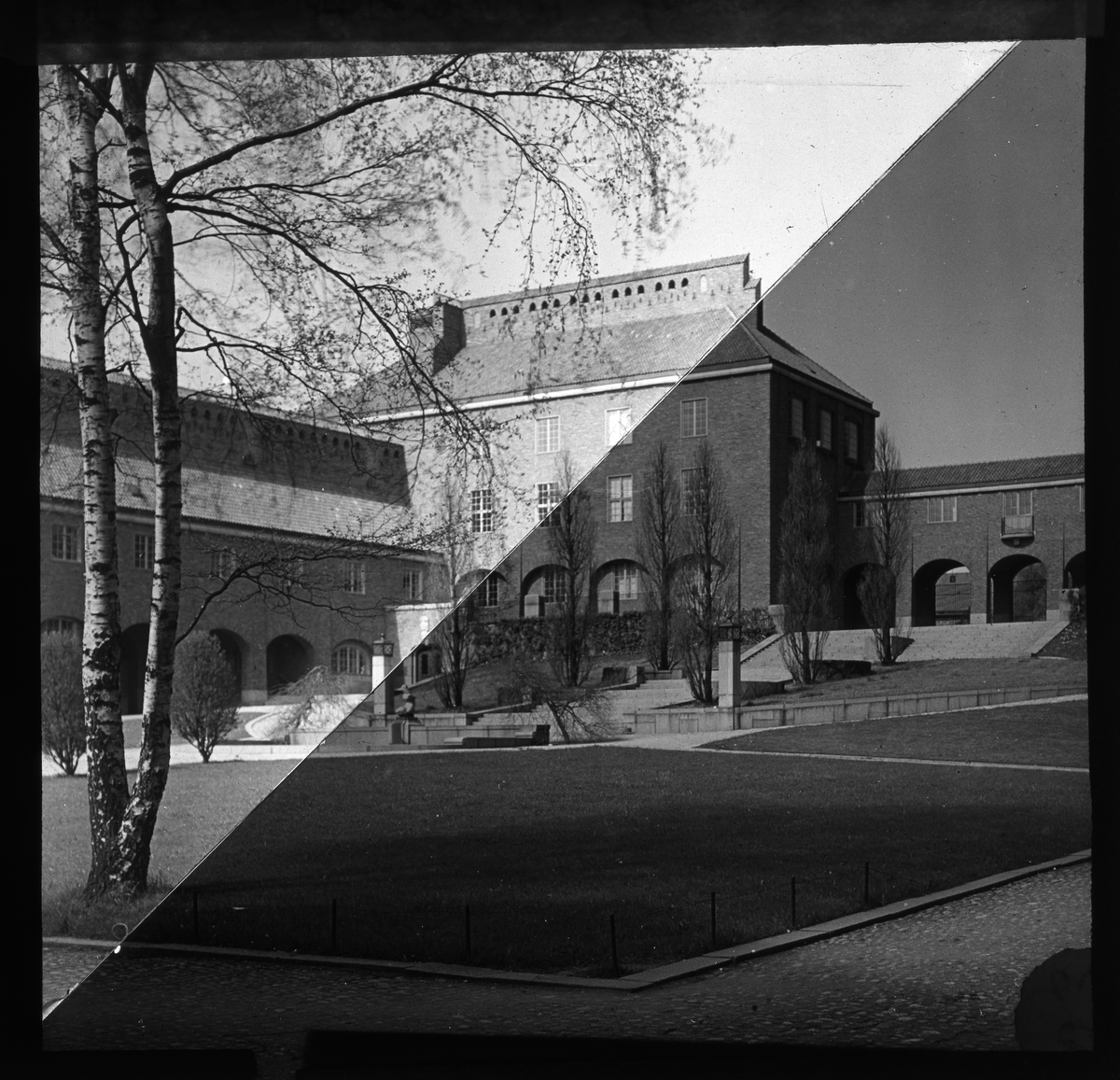 Skioptikonbild från Institutionen för fotografi vid Kungliga Tekniska Högskolan. Använd av professor Helmer Bäckström som föreläsningsmaterial. Bäckström var Sveriges första professor i fotografi vid Kungliga Tekniska Högskolan i Stockholm 1948-1958.