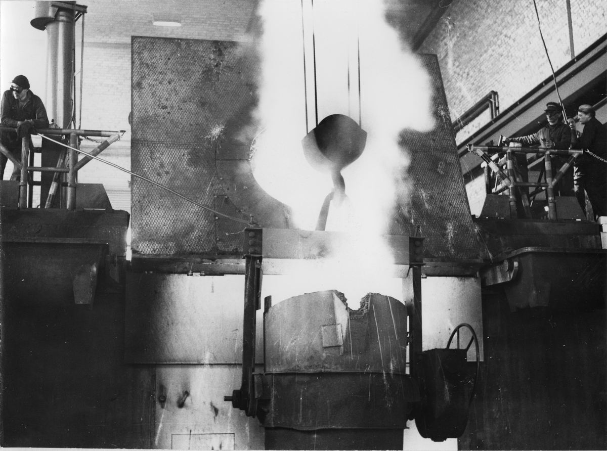Åkers Styckebruk. Tappning av en 8 tons högfrekvensugn.