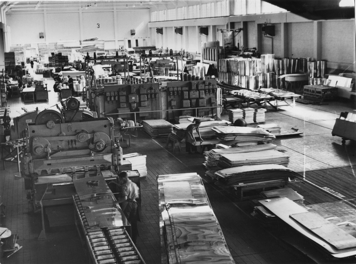 Finspongs metallverk.Tillverkning av lättmetallplåt.