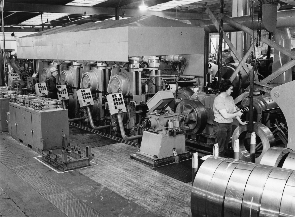 Munkfors Bruk i Värmland. Kontinuerligt kallvalsverk.