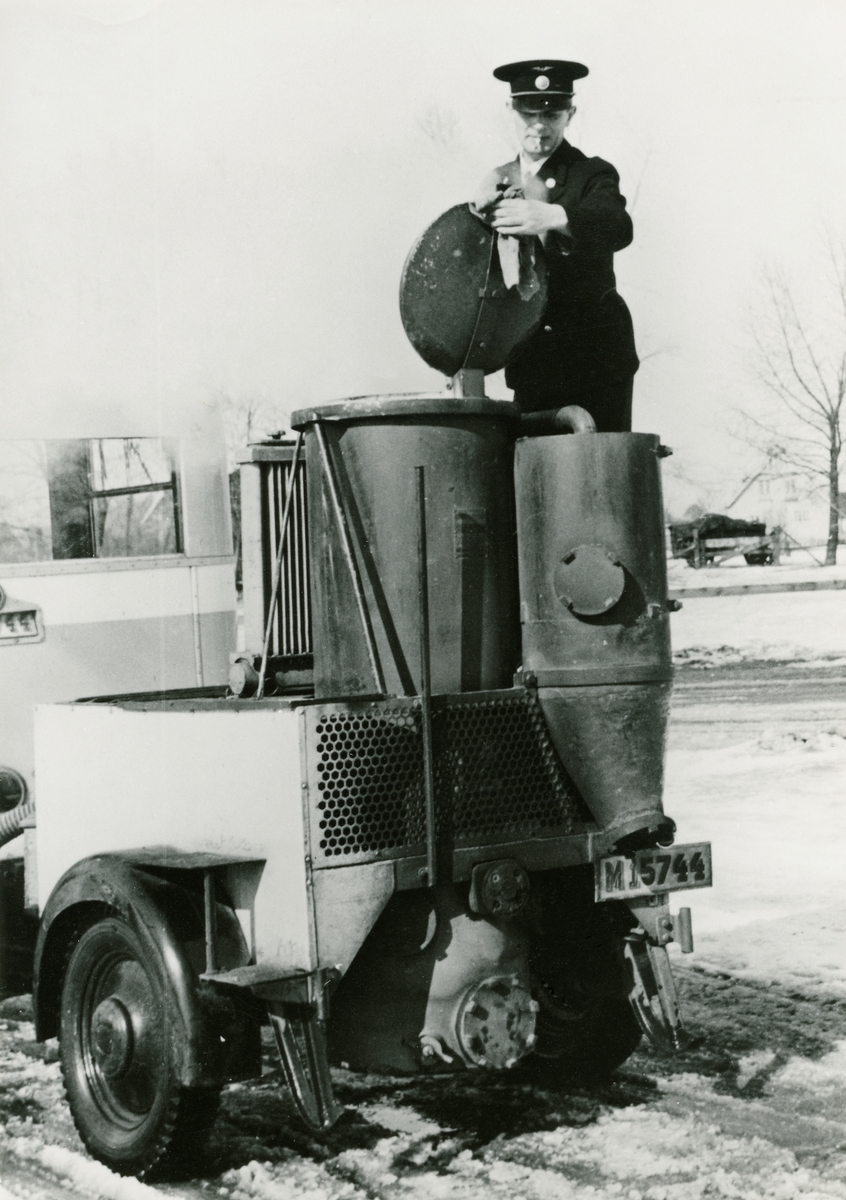 Arvid Olsson laddar aggregatet vintern 1940-41 vid eskilstunaminne.