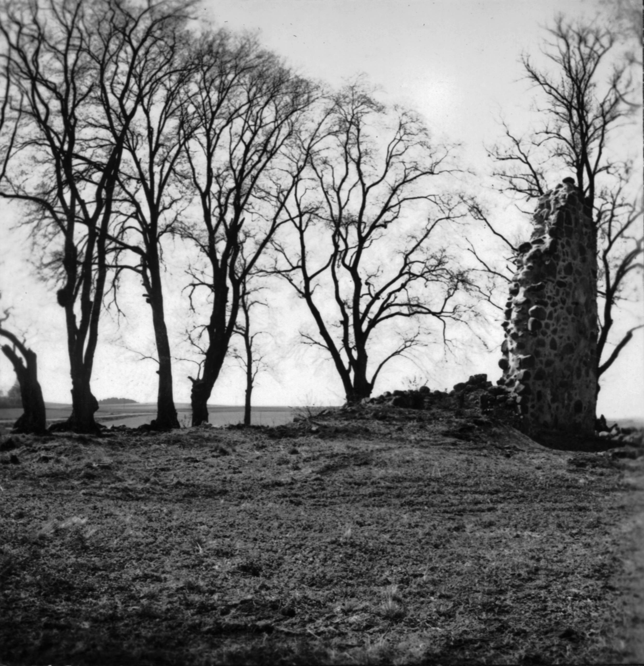 Kyrkoruin. Till höger på bilden parti av kyrktornets norra mur. Foto åt sydväst.