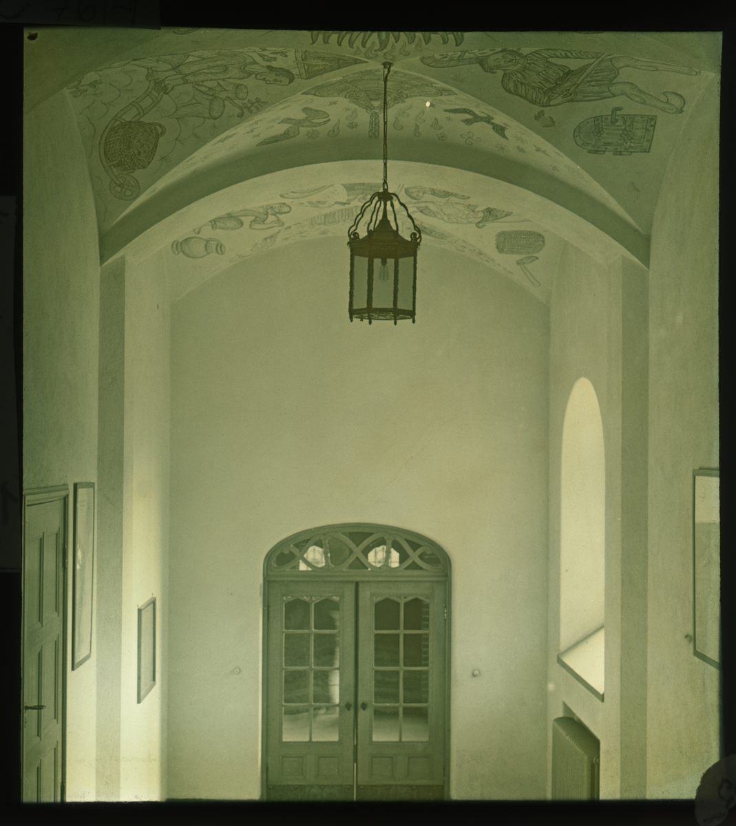 Skioptikonbild från institutionen för fotografi vid Kungliga Tekniska Högskolan. Använd av professor Helmer Bäckström som undervisningsmaterial. Bäckström var Sveriges förste professor i fotografi vid Kungliga Tekniska Högskolan 1948-1958. Trapphus. På bilden står skrivet: Kromat + järntoning För mer info: Se Fotografisk Handbok av Helmer Bäckström. Natur och Kultur. Andra omarbetade upplagan 1958-59. Kap 75-79 Toningsförfaranden för silverbilder (sid 585 och följande).