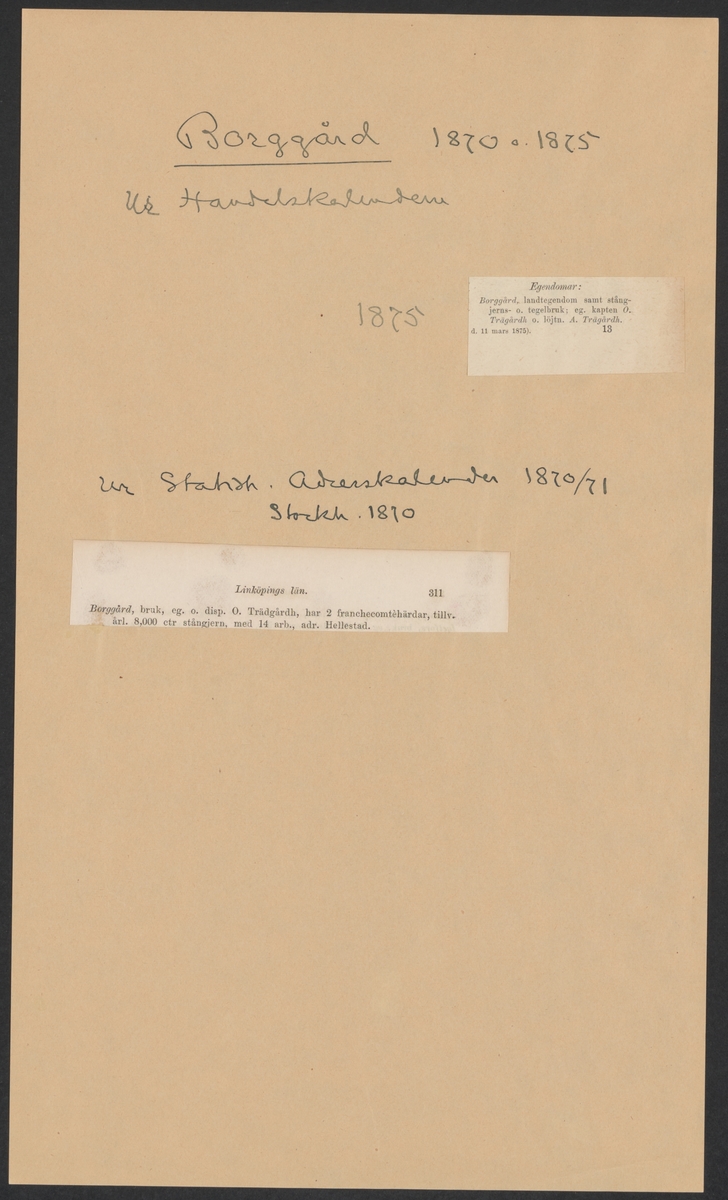 Titel: Borggårds bruks kronologi. Ur Carl Sahlins bergshistoriska samling.