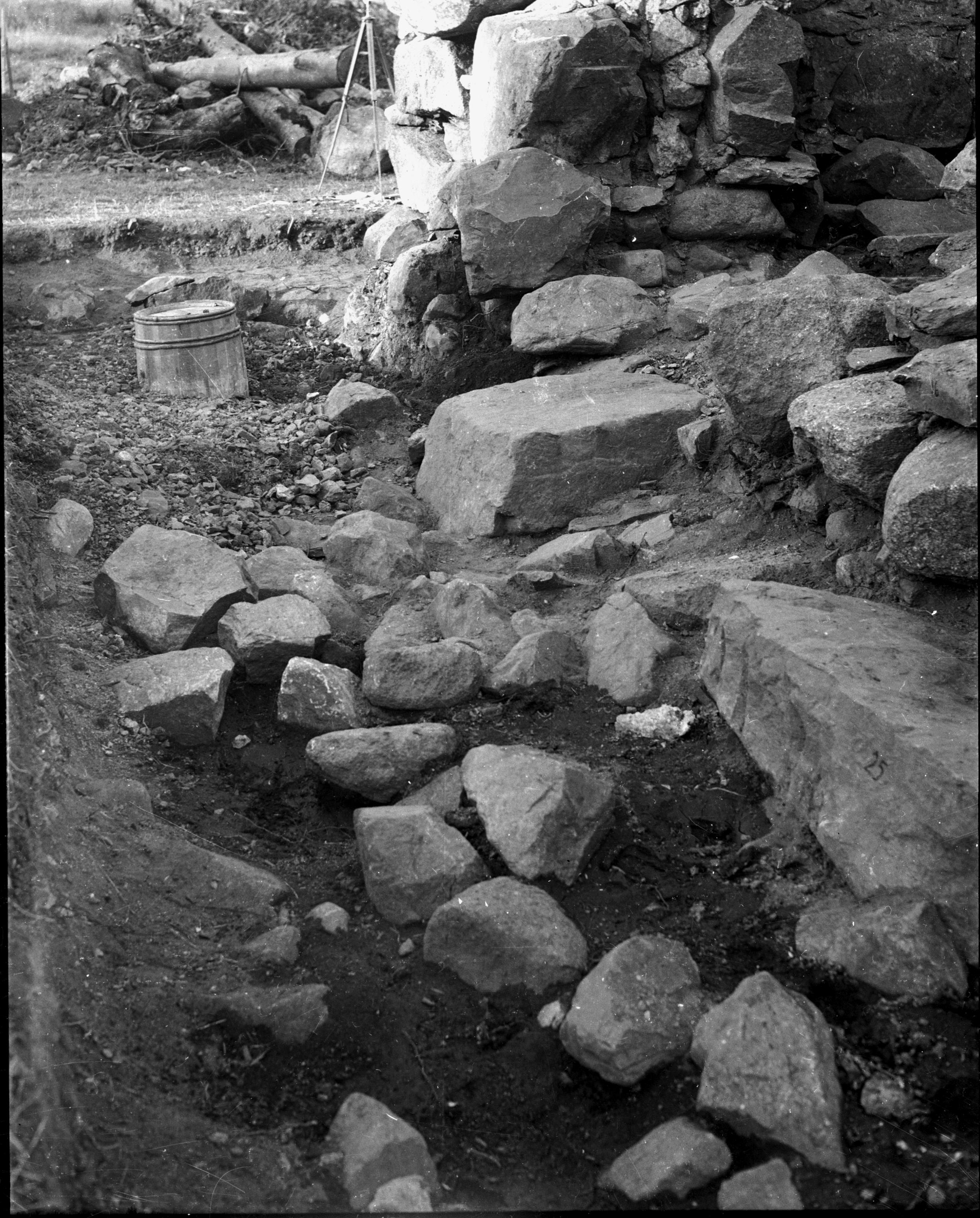 Klosterruinen, A - huset, stensättning framför västra sidan, mot sydväst.