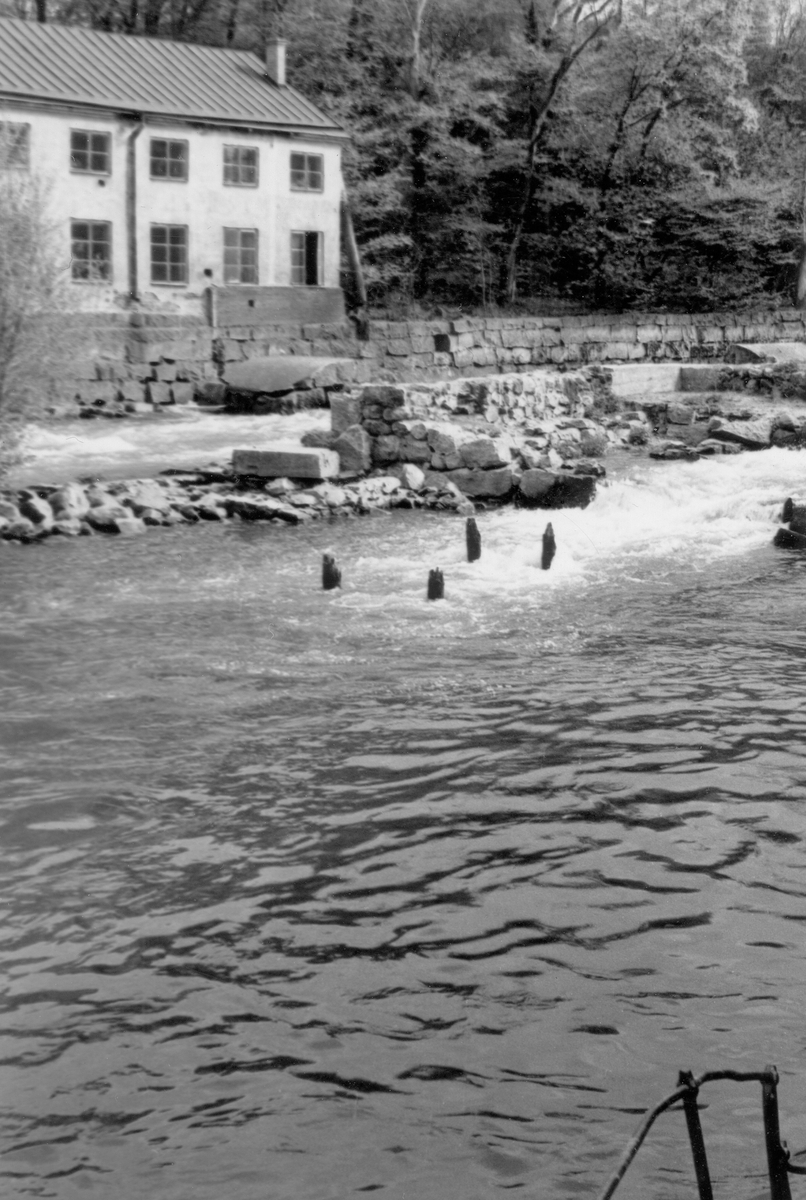 Torshälla kraftverk. Damm och ränna, kraftverksbyggnad.