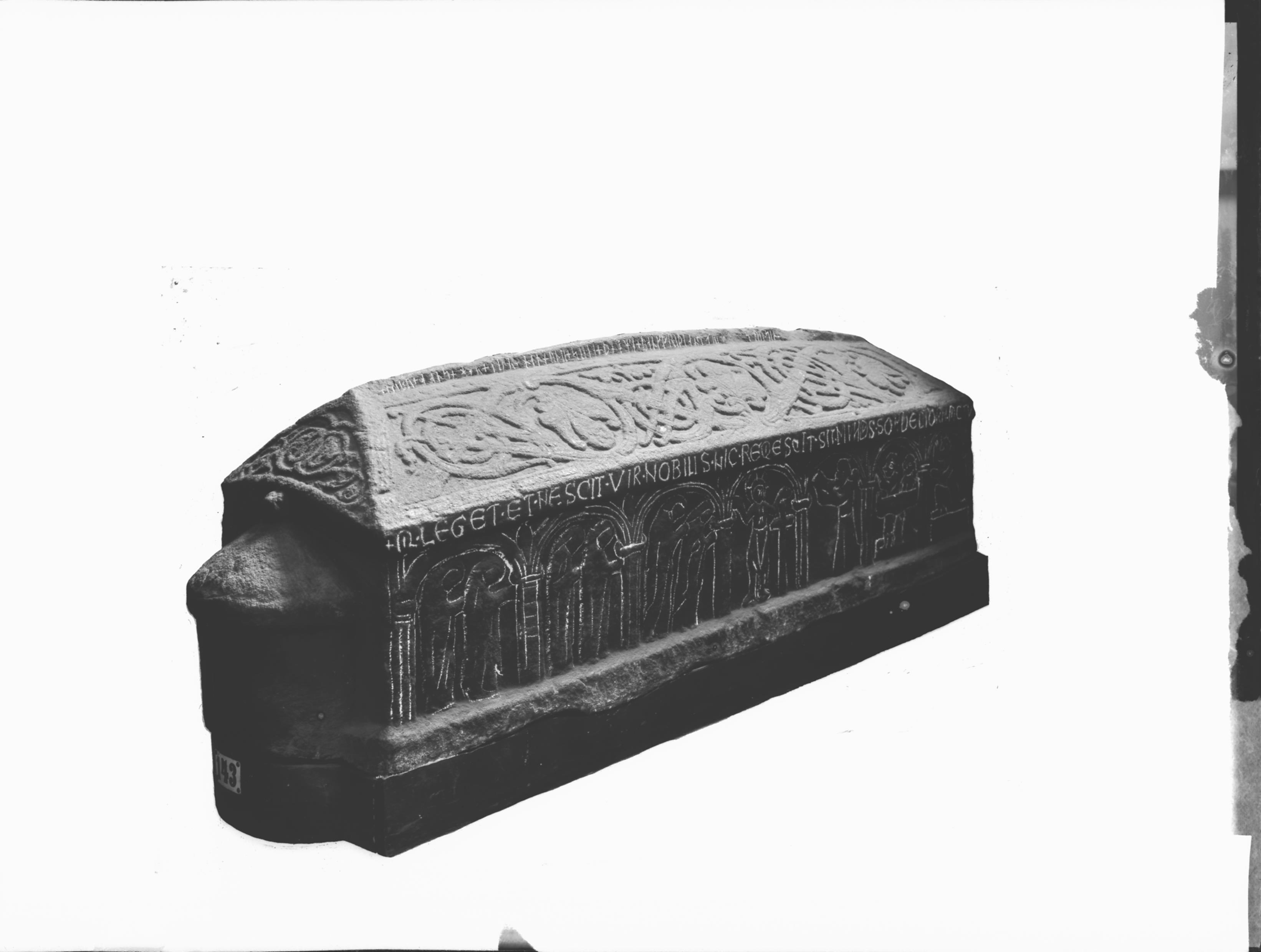 Botkyrkamonumentet. Gravvård av sandsten med grundform av en kyrka. 1100-talets första hälft.