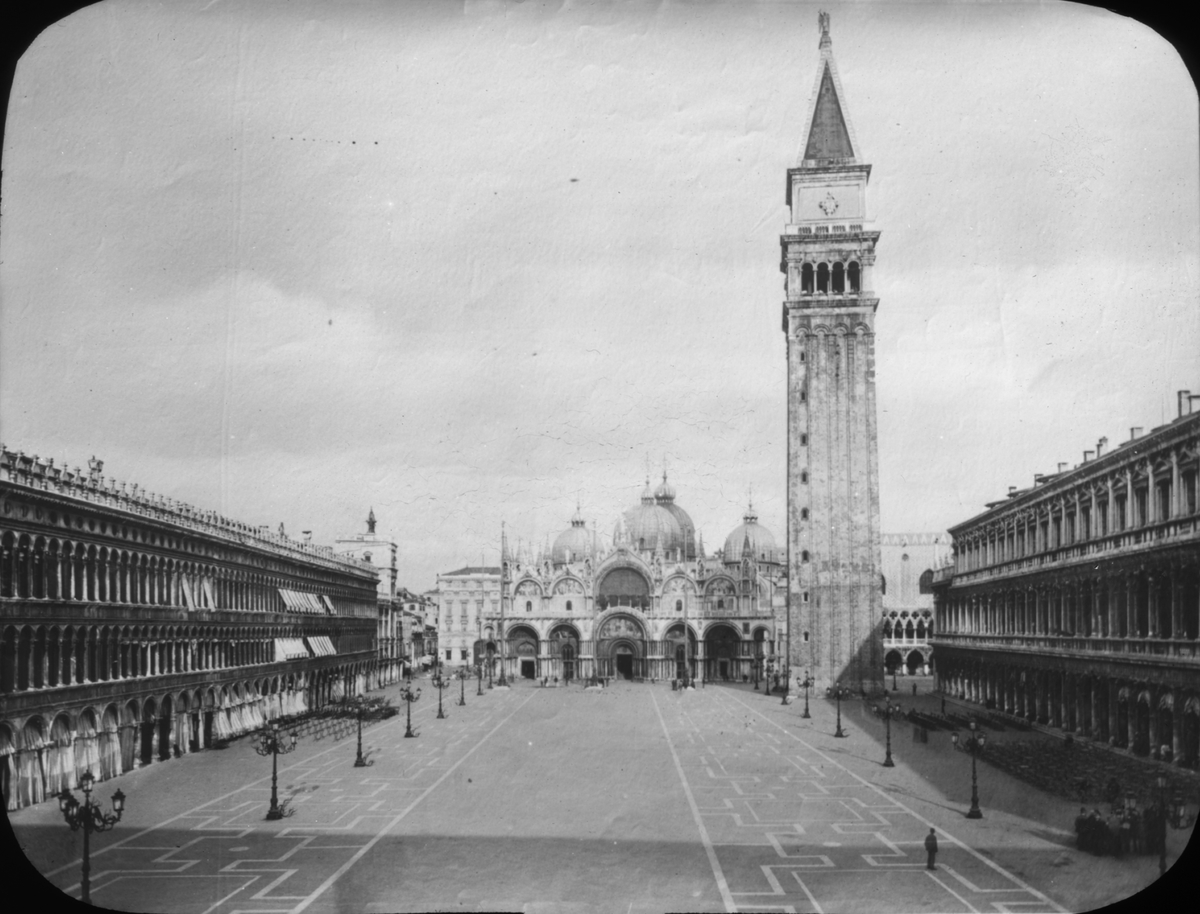 Skioptikonbild med motiv av Markusplatsen i Venedig.