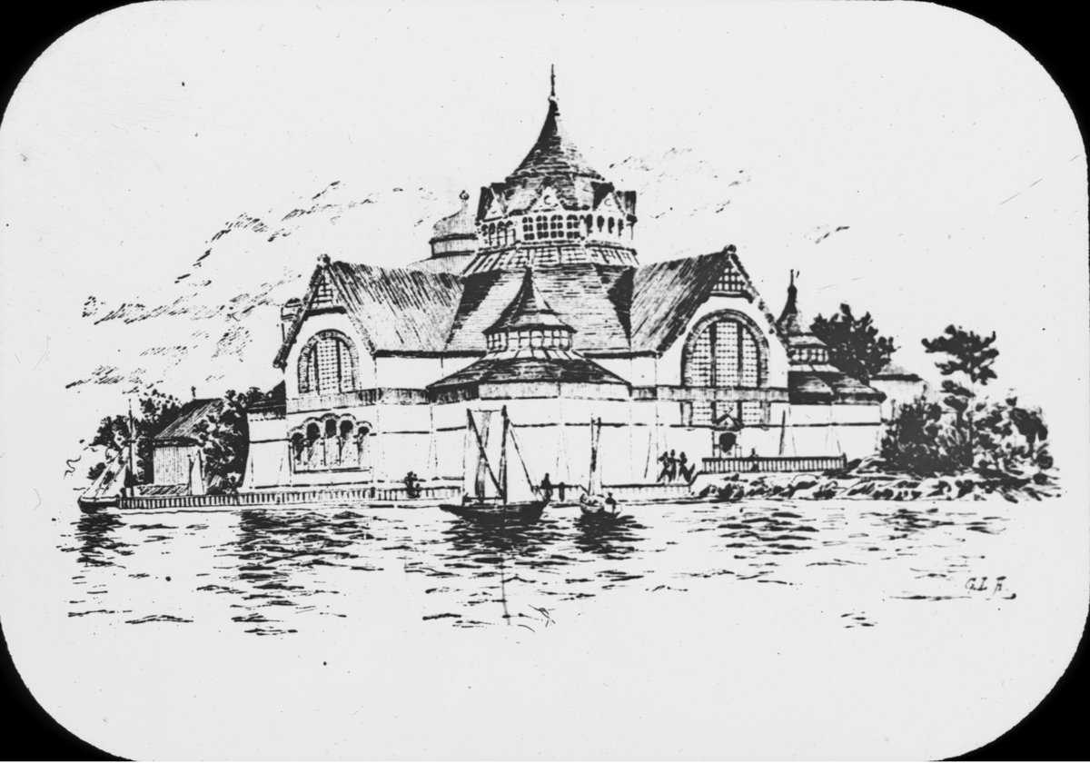 Titel: Skioptikonbild med motiv från Stockholmsutställningen 1897.