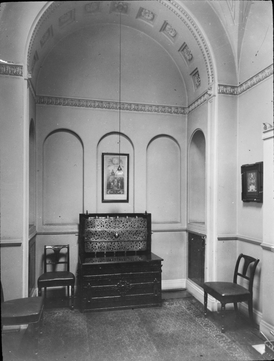 Skioptikonbild. Arkitektoniskt motiv från Bank of England, arkitekten John Soanes byggnad som revs under 1920-talet.