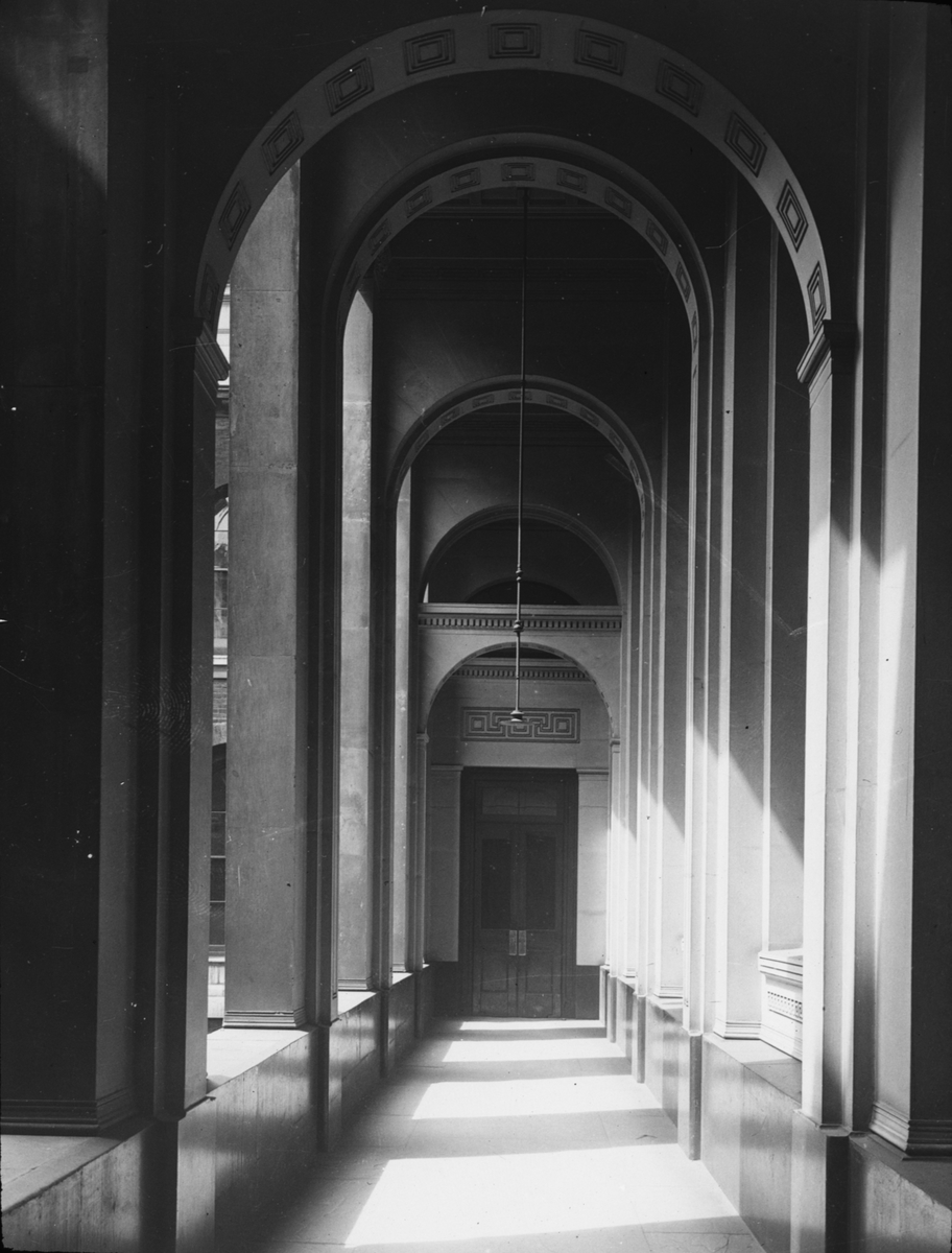 Skioptikonbild. Arkitektoniskt motiv från Bank of England, arkitekten John Soanes byggnad som revs under 1920-talet.