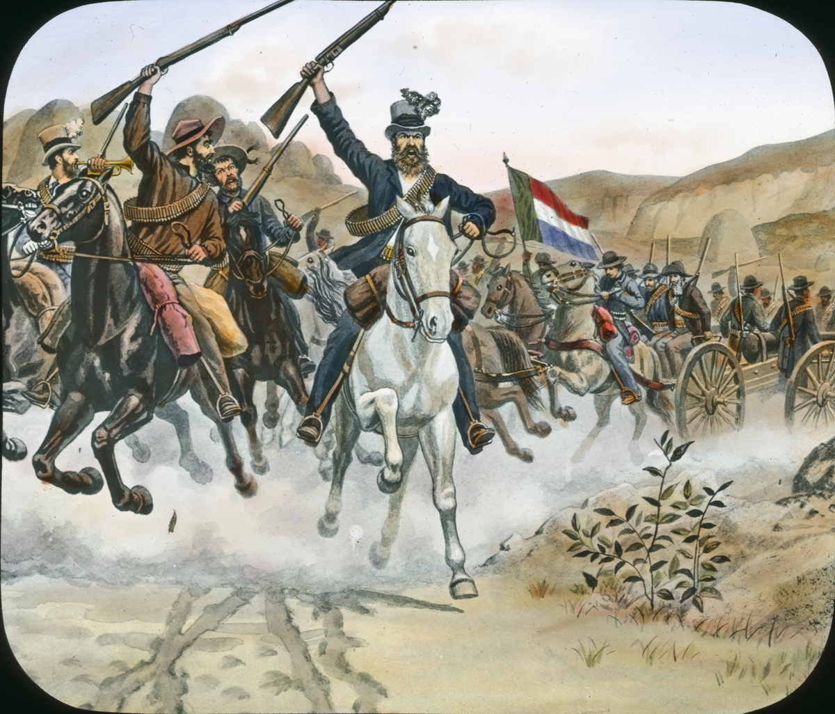 Kolorerad skioptikonbild med motiv av fransk krigsscen.