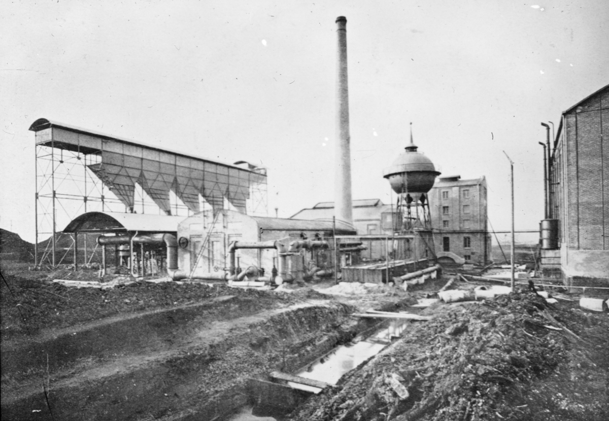 Skioptikonbild med motiv av okänd torvberedningsfabrik.