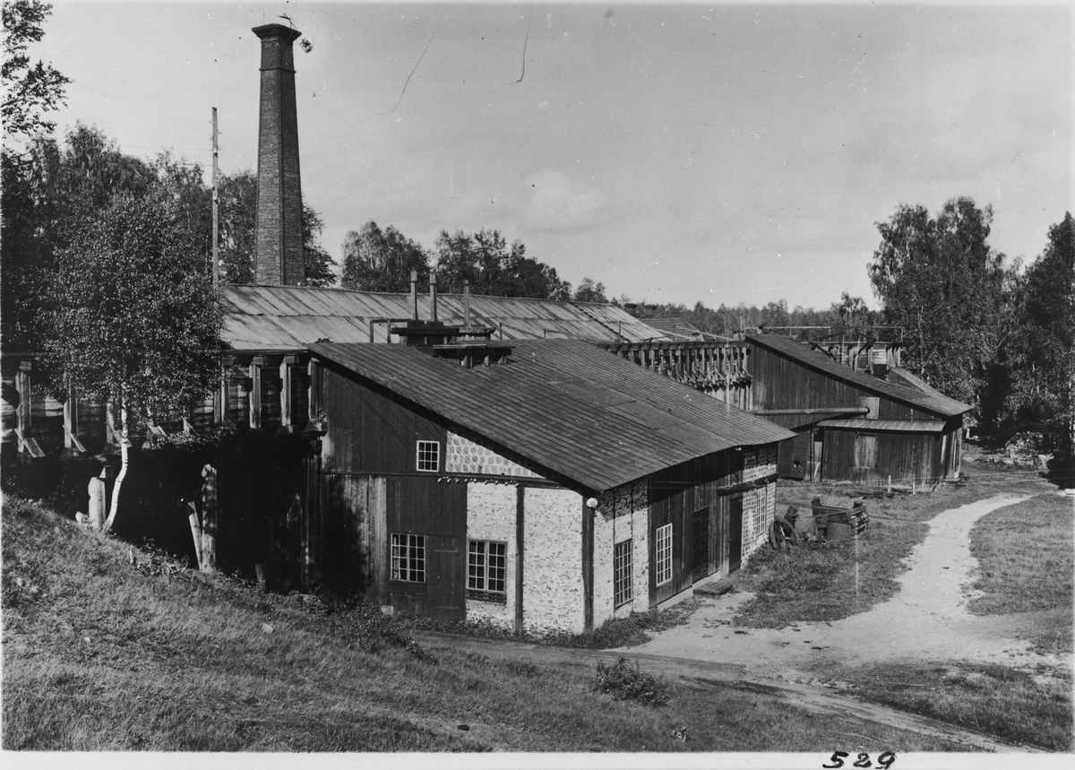 Korså Bruk, rännan med vatten till hammarna till vänster i bild.
