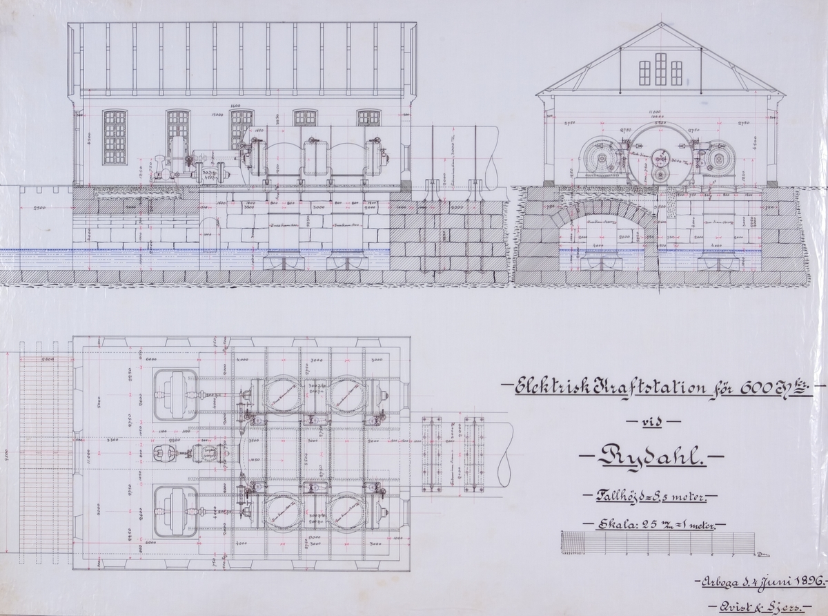 Ritning. Elektrisk kraftstation vid Rydahl.