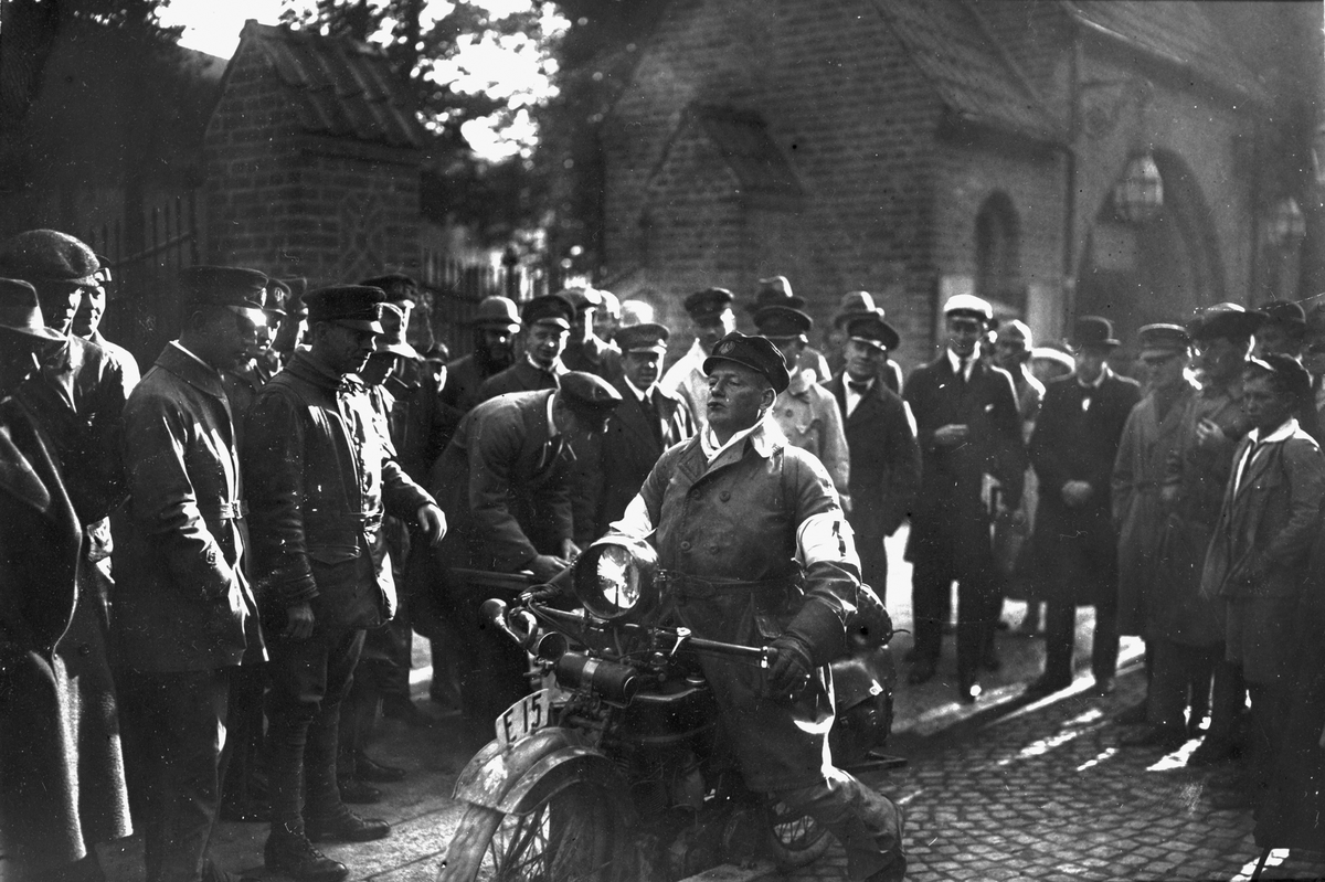 Husqvarna motorcykel. Motorcykeltävling. Ringborg startar.