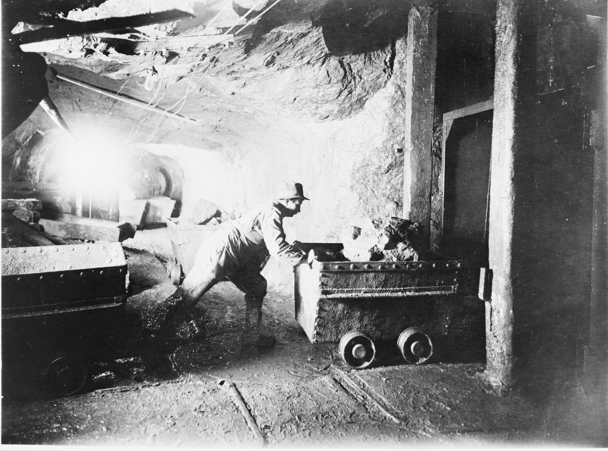 Uppfordringsschakt på 6:e etagen 360 m under jord vid Dalkarlsberg. Bilden inkom 1927. >>