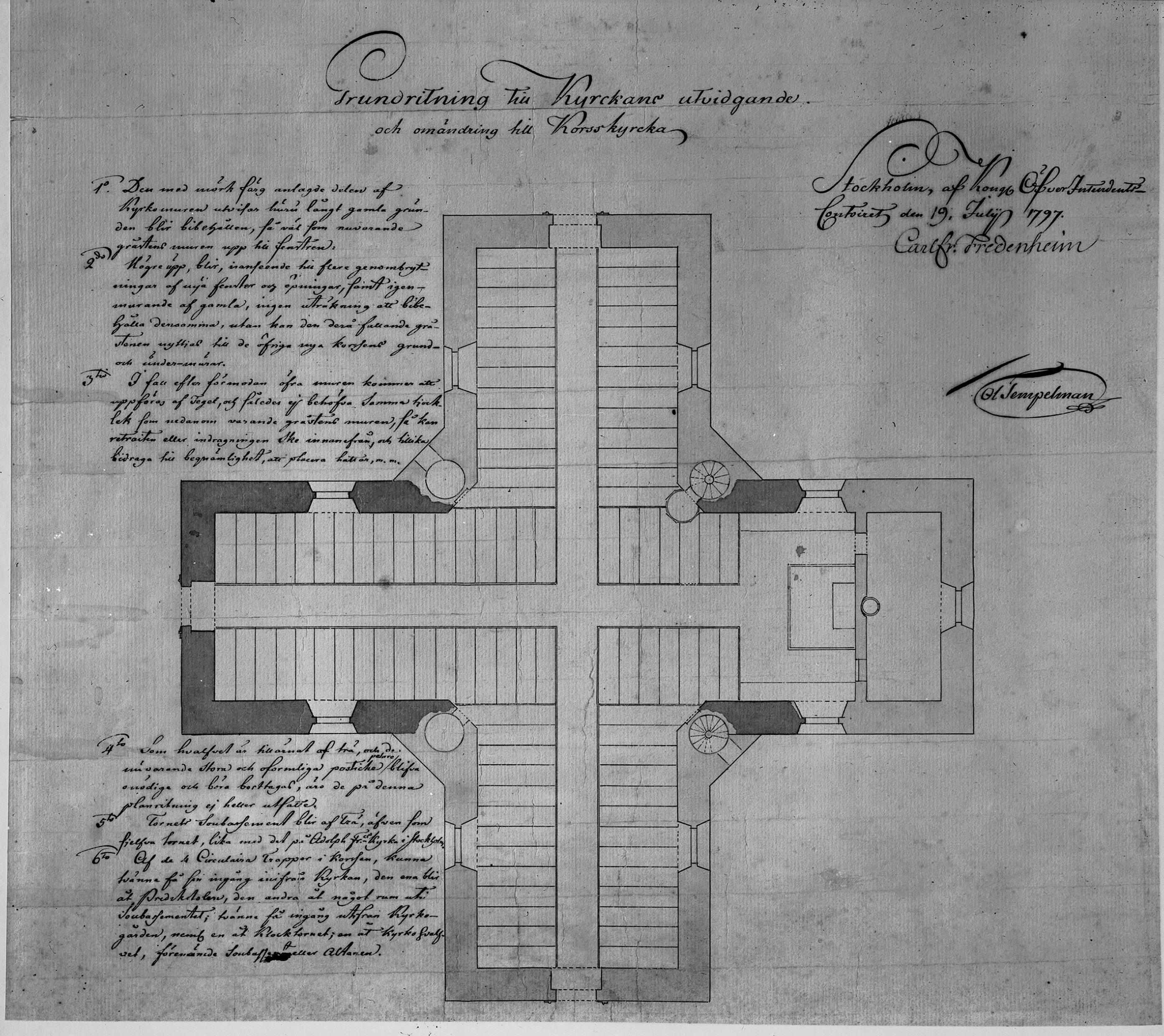 Ritning, förslag till ombyggnad. Foto efter planritning av Olof Tempelman 1797.