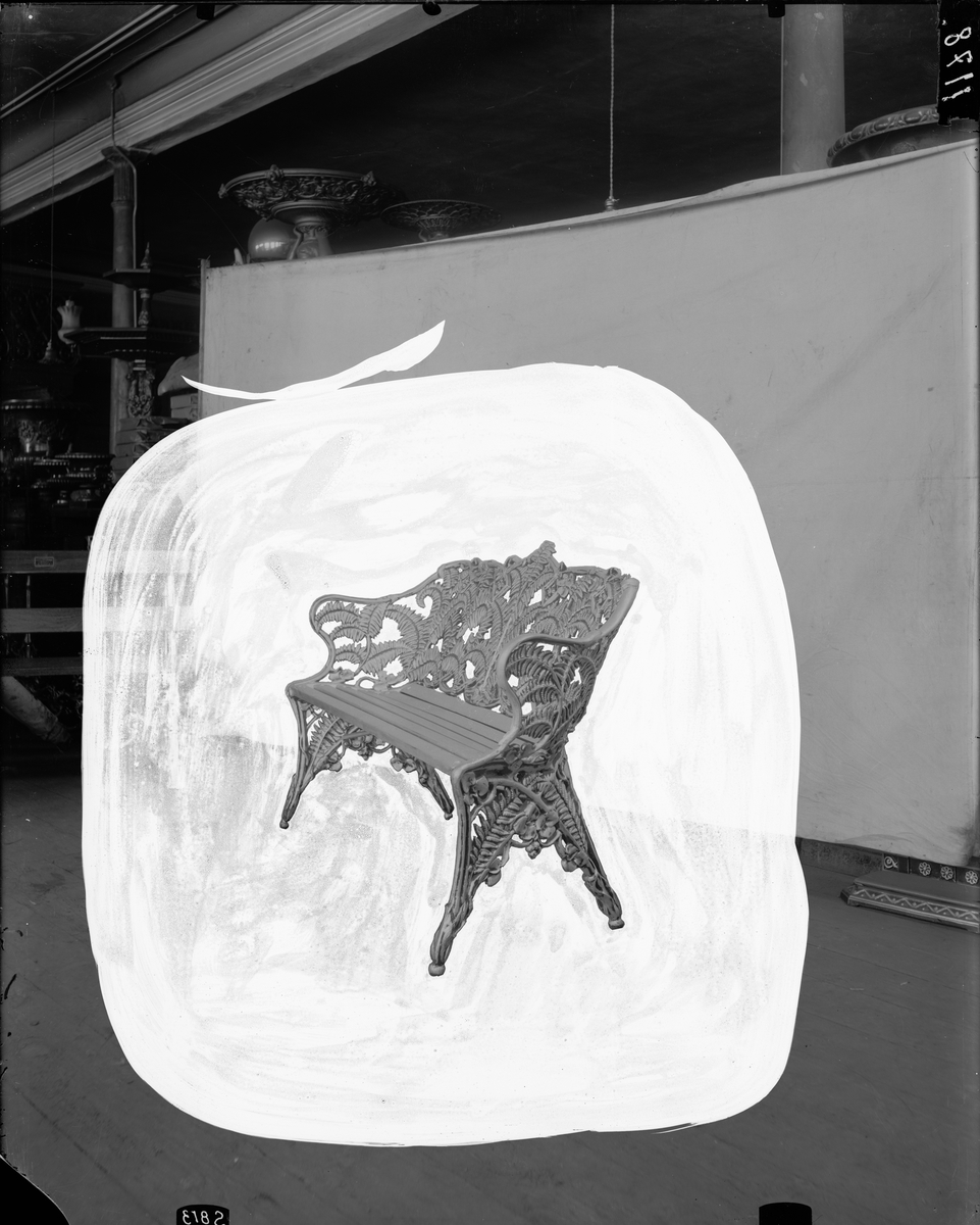 Gjutjärnssoffa med ormbunksblad. Retuscherad bild.