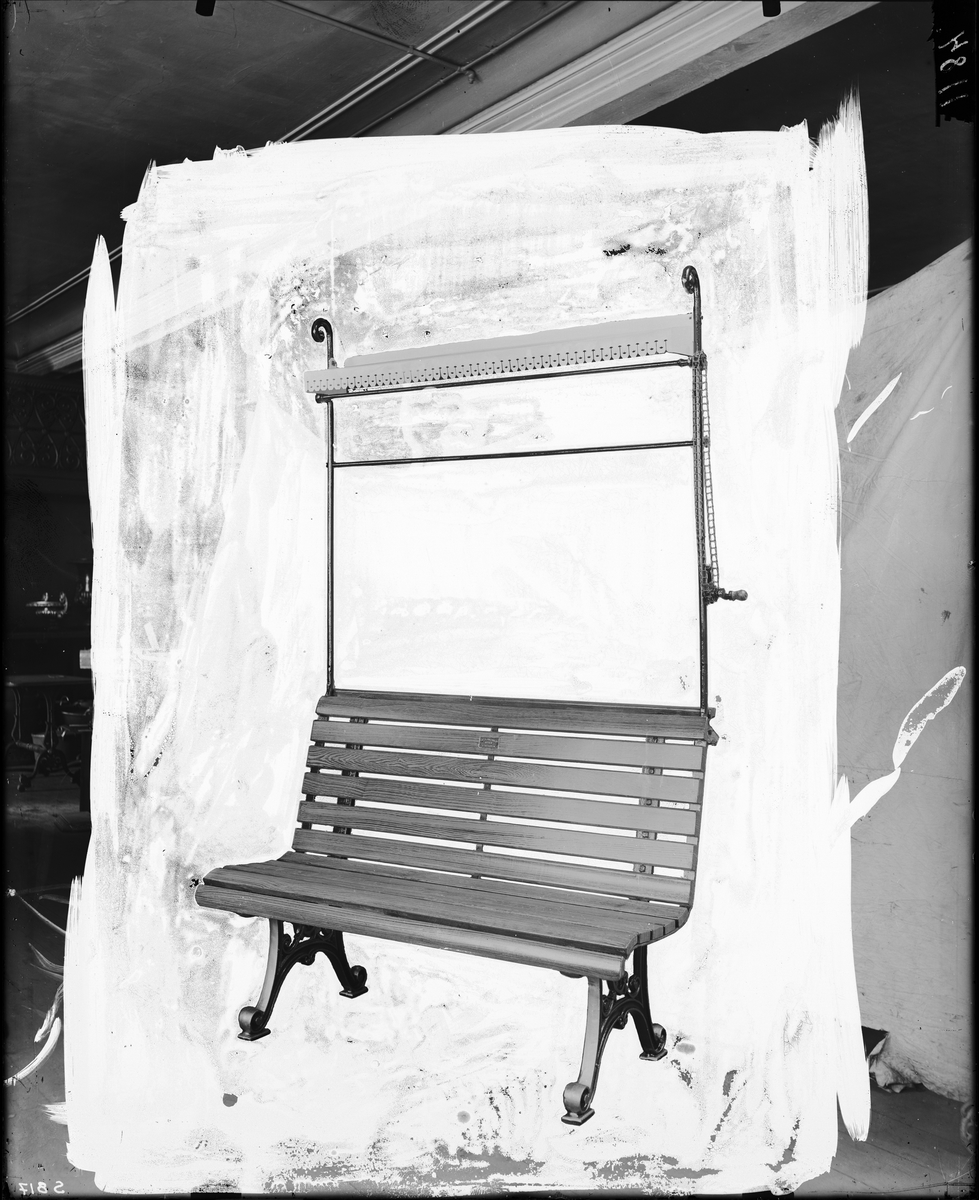 Soffa med gjutjärnsstativ och soljalusi. Retuscherad bild.