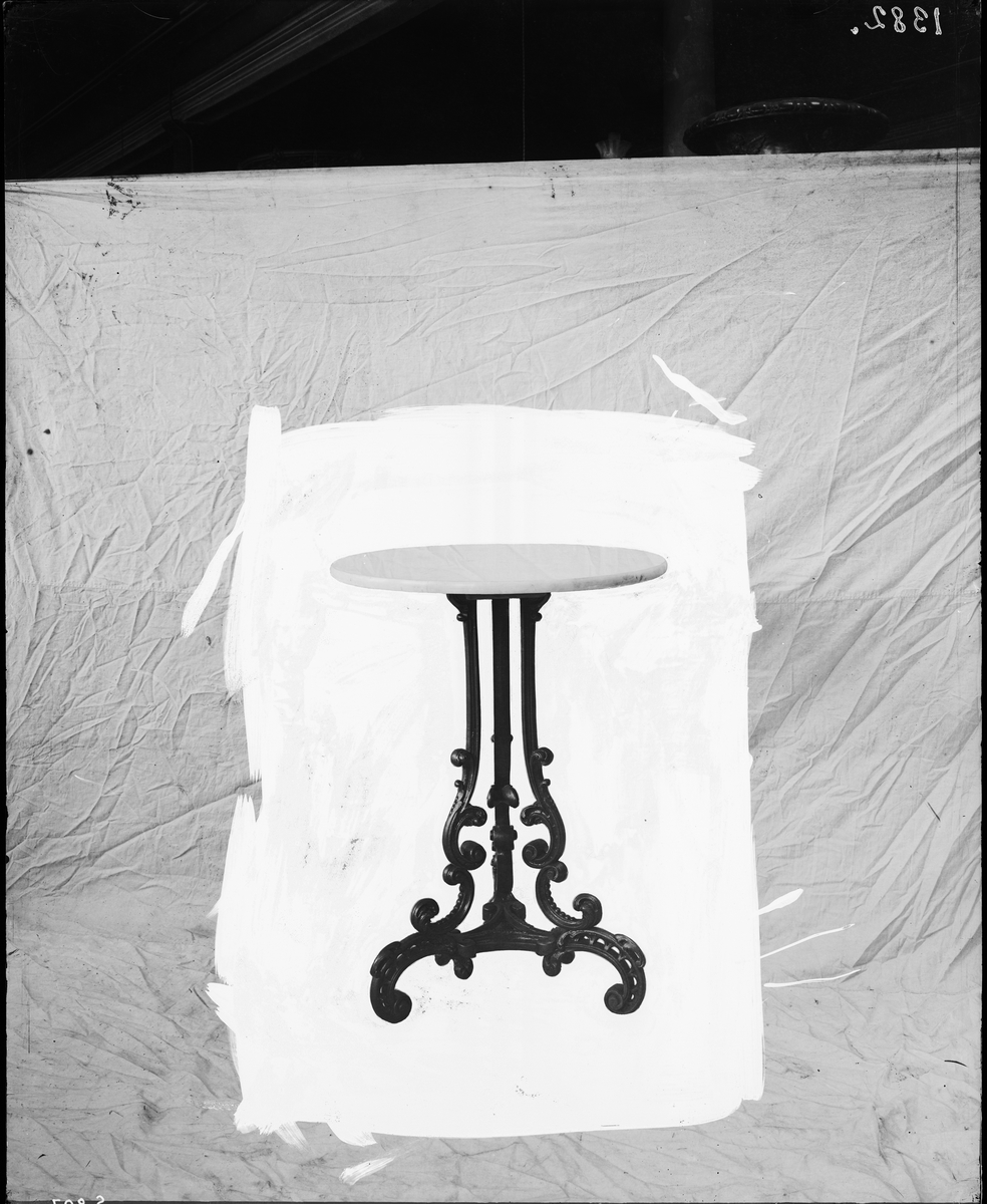 Bord med gjutjärnsstativ. Till hotell Rydberg.