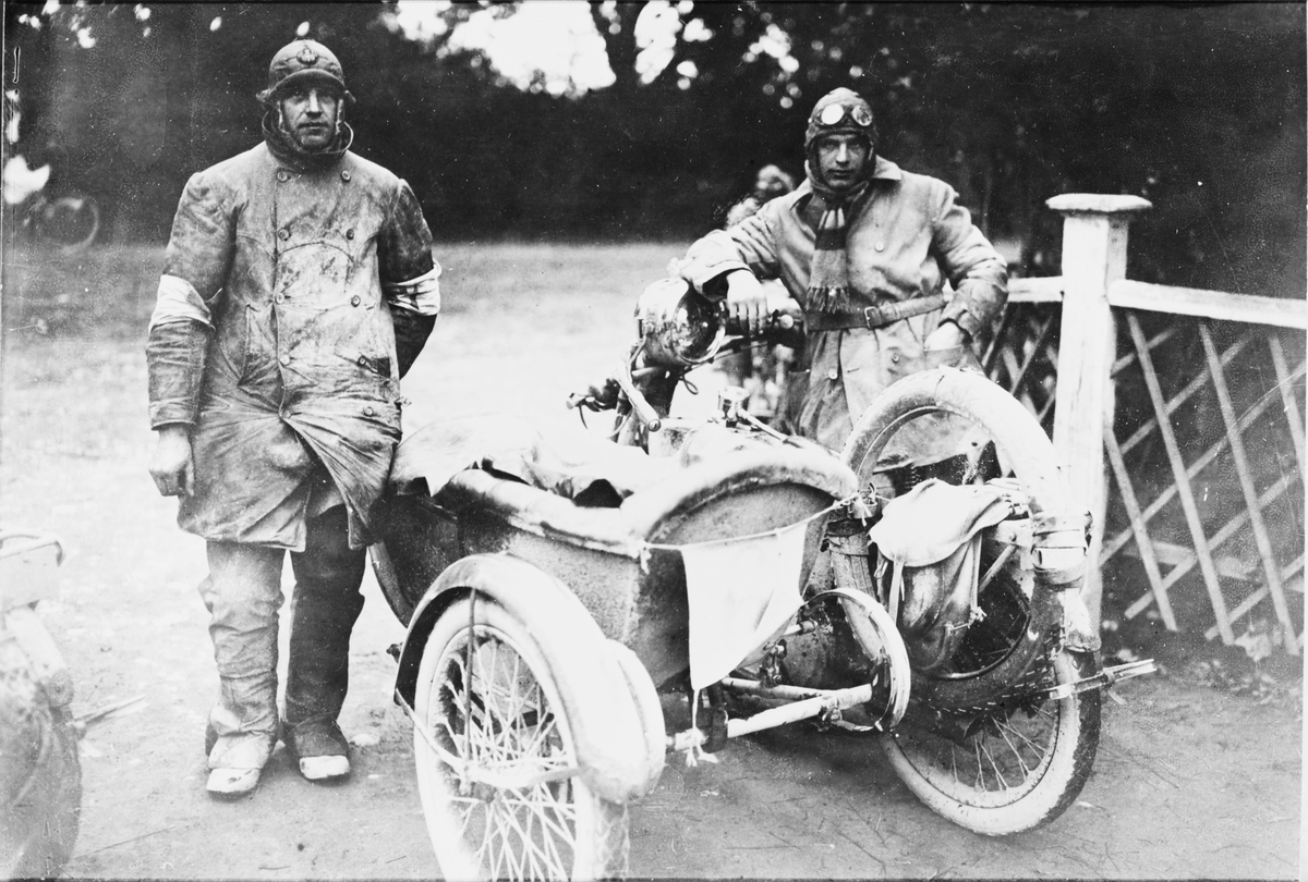 Bröderna Westerberg på Harley Davidson med sidovagn.