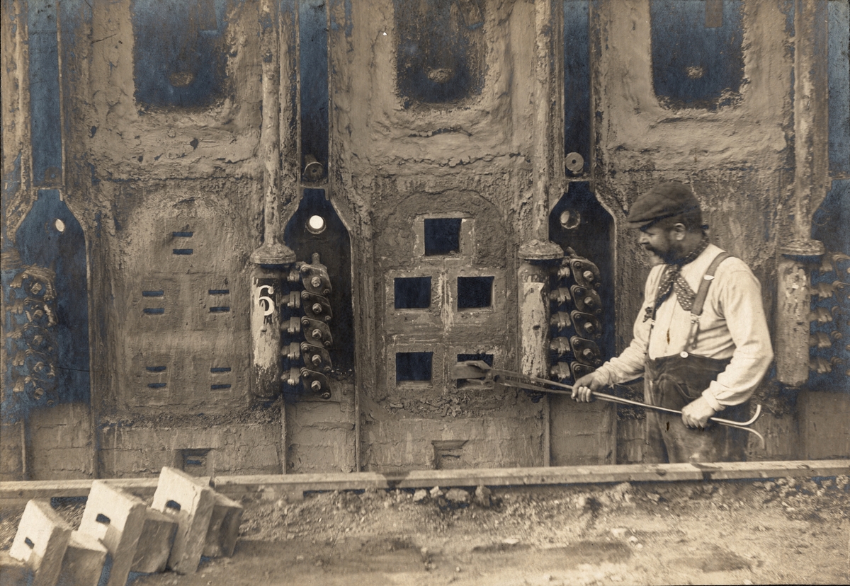 Titel: Kokstillverkning i Leeds, England omkring 1930.
