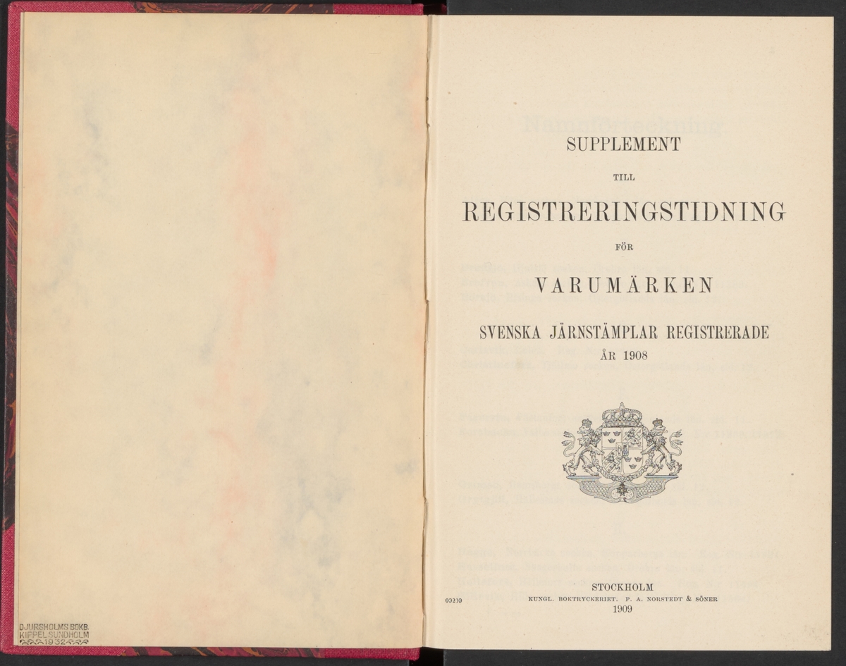 Titel: Svenska järnstämplar 1908-1929. Tryckt. Ur Carl Sahlins bergshistoriska samling.