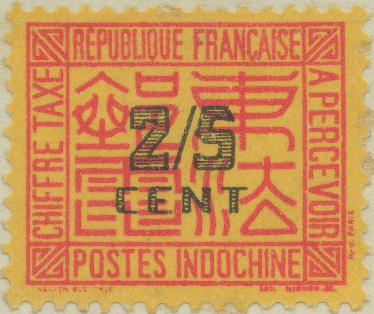Frimärke från Indokina, 1931. Motiv av Indiska inskrifter -Lösen märke-