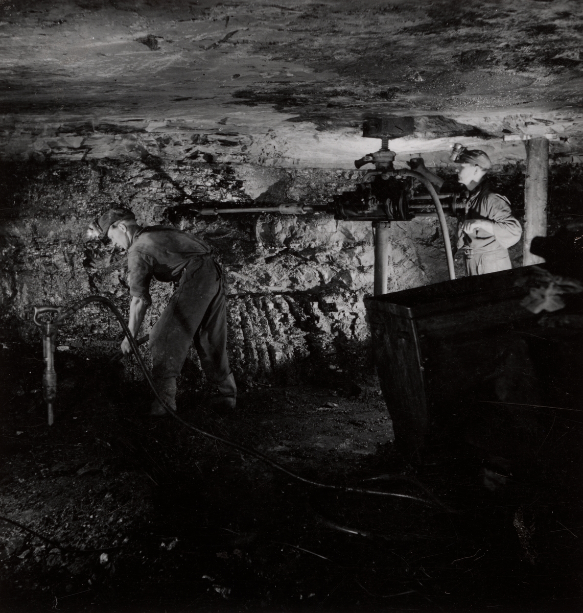 Förskrämningsarbete med luftdriven stötmaskin, Ormatorps Gruva, Höganäs.