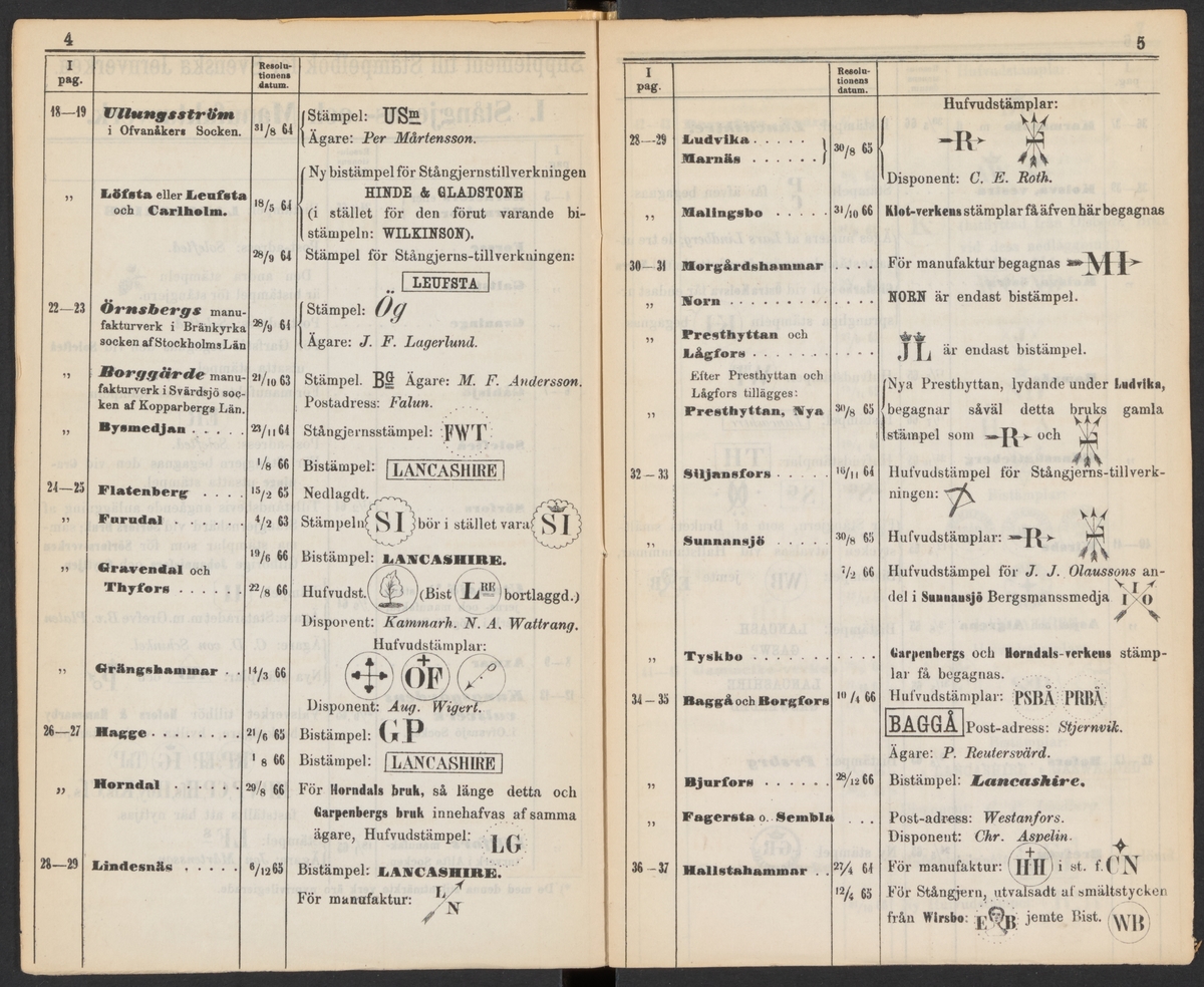 Stämpelbok för Svenska Järnverken 1864, med supplement 1867.
