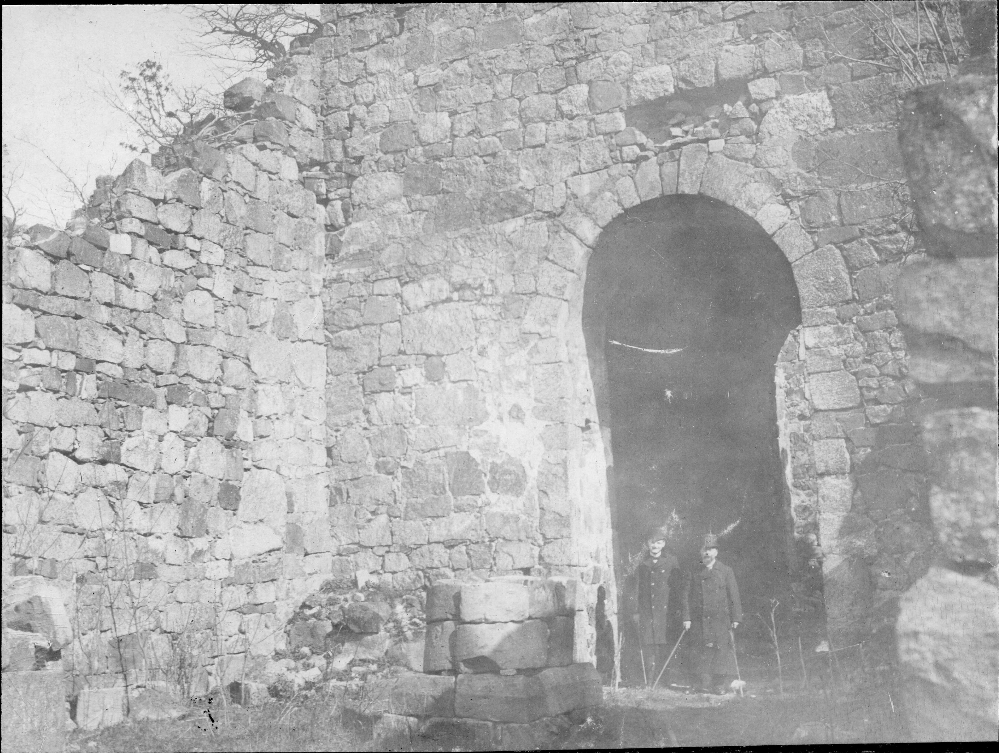 Interiör mot öster, portal mellan långhus och centraltorn. Foto möjligen av Olof Sörling, 1890-talet.