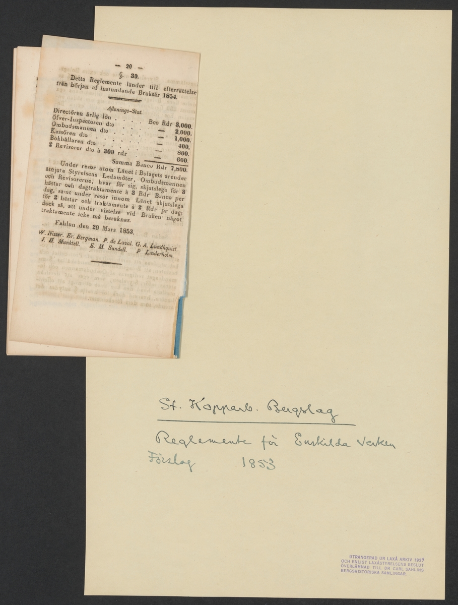 Titel: Stora Kopparbergs Bergslag. Ur Carl Sahlins bergshistoriska samling.