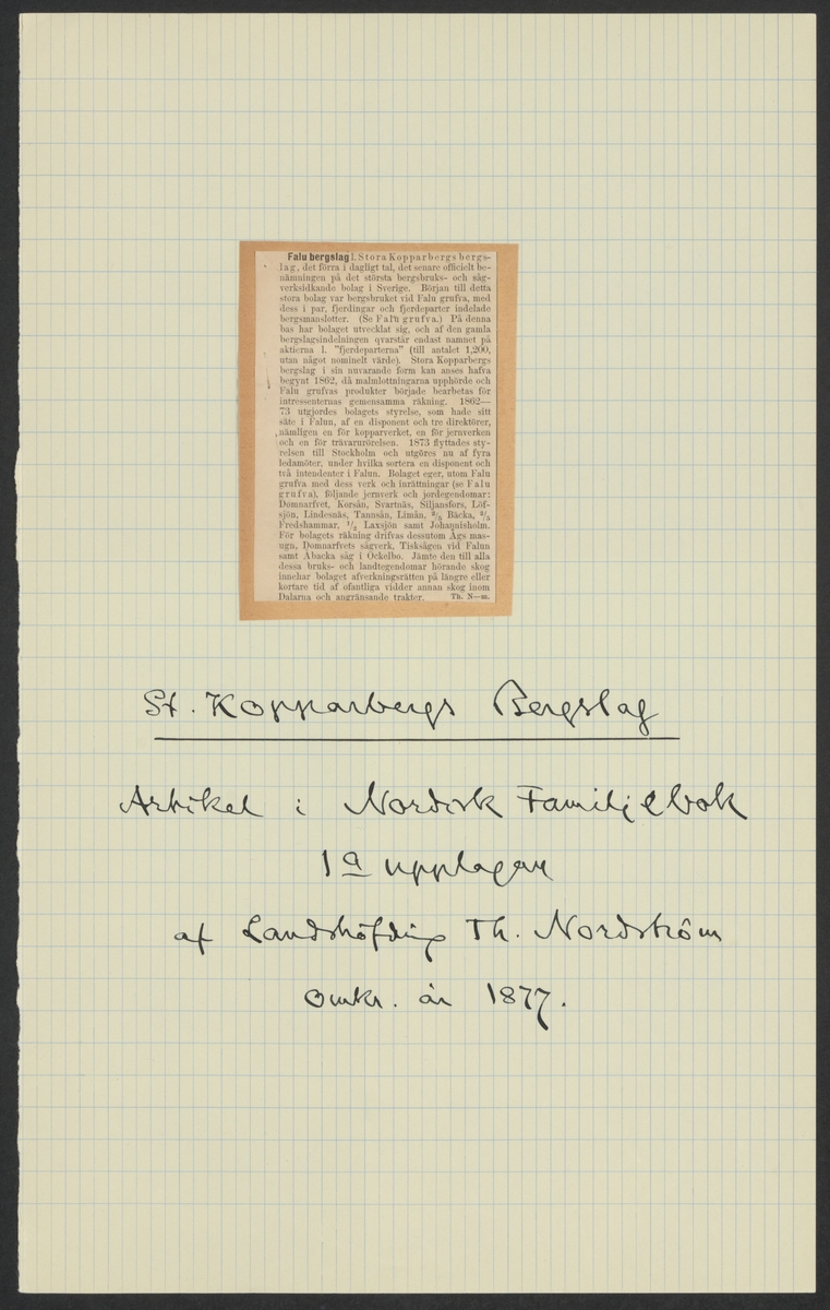 Titel: Stora Kopparbergs Bergslag. Ur Carl Sahlins bergshistoriska samling.