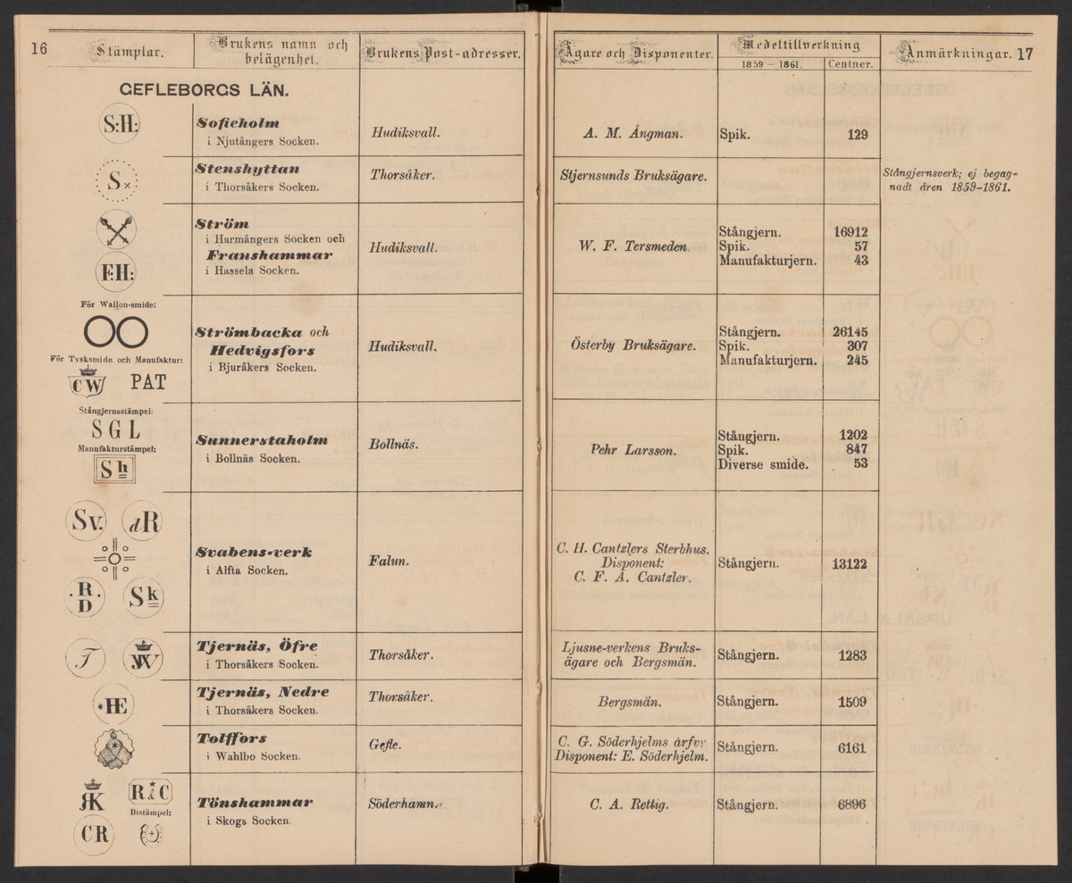 Stämpelbok för Svenska Järnverken 1864, med supplement 1867.