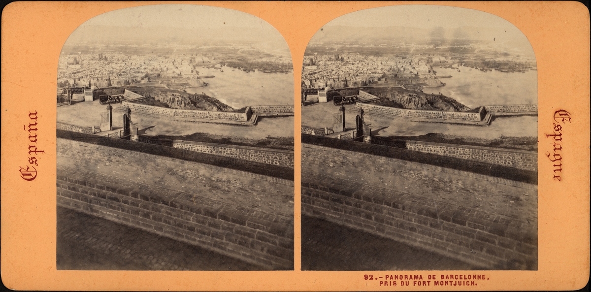 Stereobild, panoramavy från Montjuich i Barcelona.