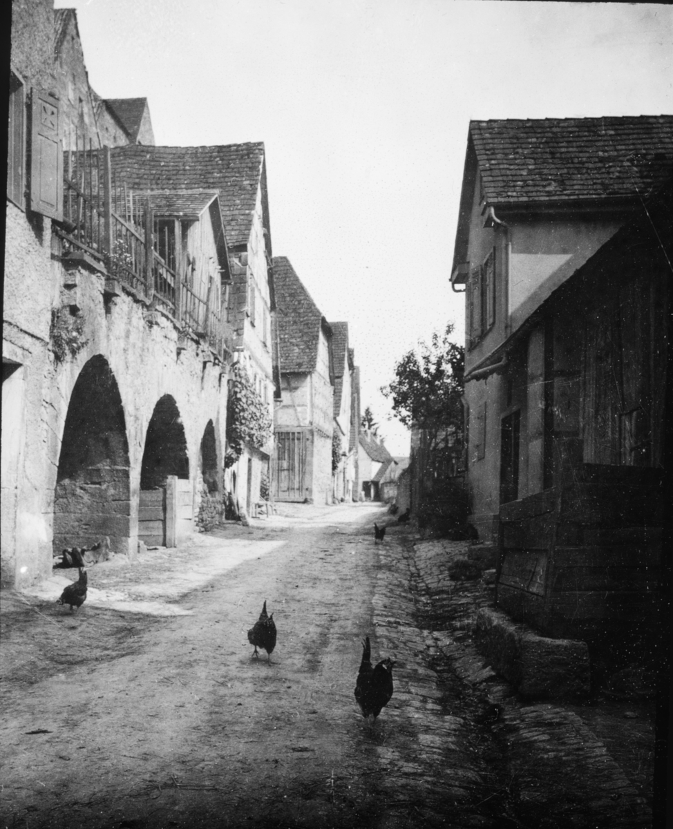 Titel: Skioptikonbild med motiv från gata i Besigheim. Bilden har förvarats i kartong märkt: Resan 1907. Besigheim 10. 30