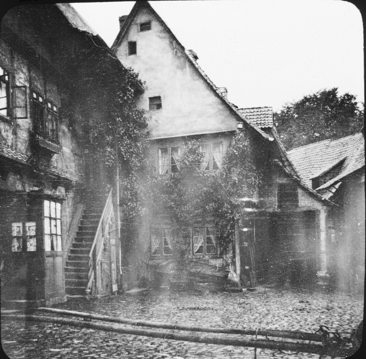 Skioptikonbild med motiv av hus i Lübeck.