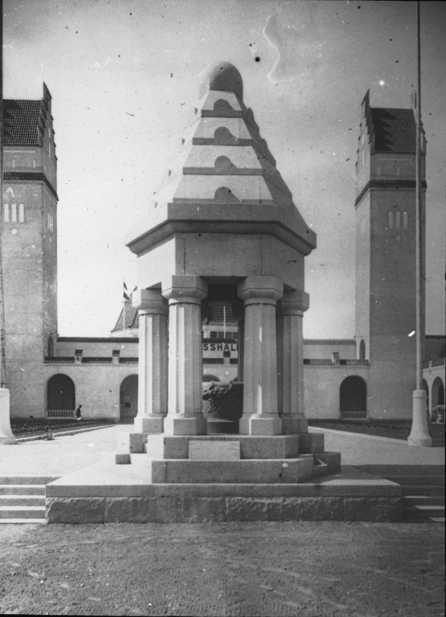 Skioptikonbild med motiv från Baltiska utställningen i Malmö 1914, konstindustri och hantverksutställning.
